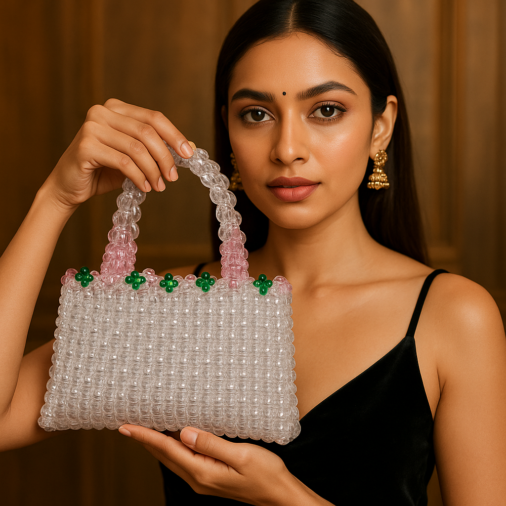 Elevate your style with this premium handcrafted crystal beaded handbag, designed to add a touch of elegance to any outfit. Made entirely by skilled artisans, the bag features: