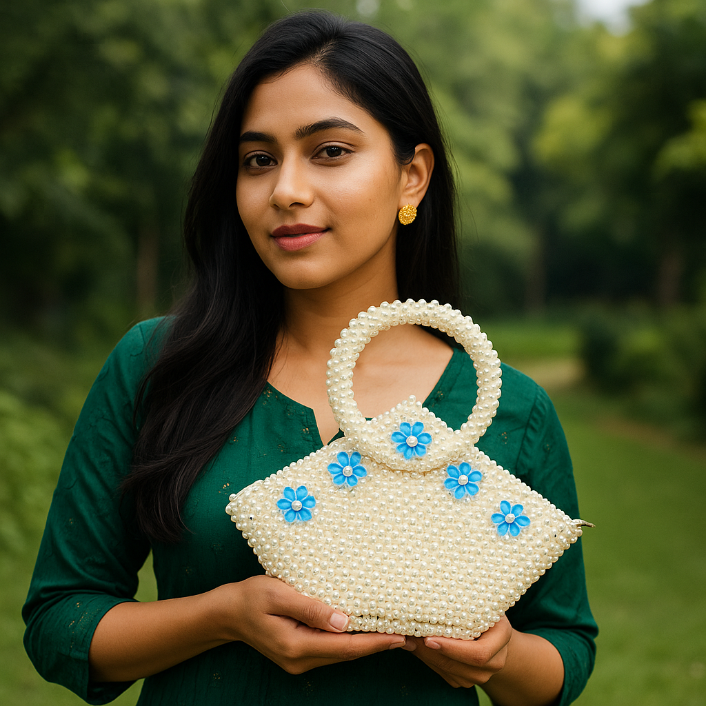 Elevate your style with this Luxury Handmade Blue Floral Pearl Beaded Handbag, thoughtfully designed for women who appreciate handcrafted elegance. Made with premium ivory pearls and vibrant blue crystal flowers, this designer purse brings a fresh, graceful aesthetic that enhances any outfit—traditional or western.
