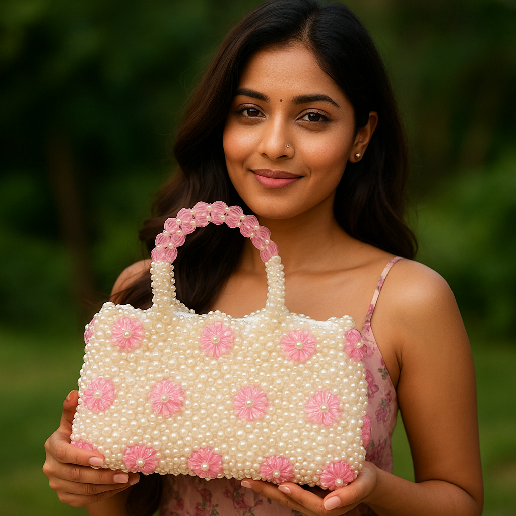 Introducing the Luxury Handmade Pearl & Pink Floral Beaded Handbag, designed for women who appreciate elegance, craftsmanship, and a timeless feminine aesthetic. Crafted using high-quality ivory pearls and delicate pink crystal flowers, this bag brings a charming and premium appeal to any outfit—traditional or modern.