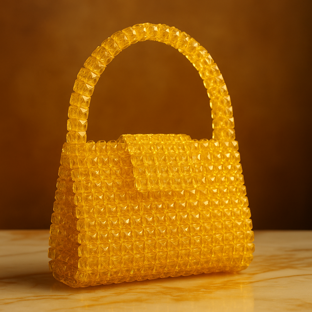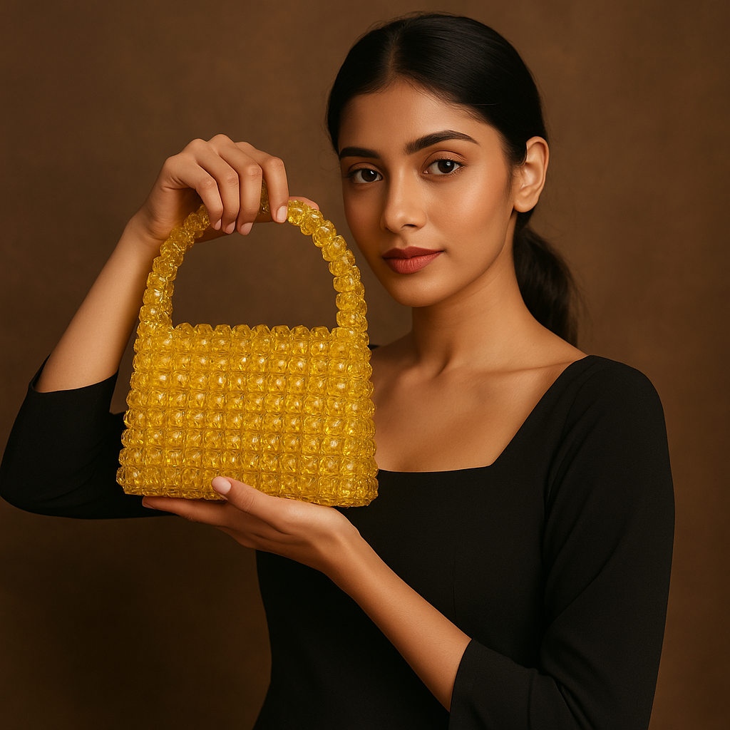Add a bright, stylish touch to your outfit with this Luxury Handmade Yellow Crystal Beaded Handbag. Crafted using premium transparent crystal beads, this handbag delivers a stunning glossy finish that instantly stands out at parties, weddings, receptions, and festive events.