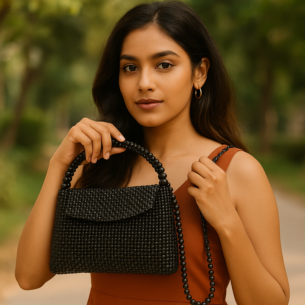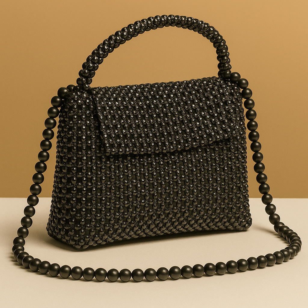 Step into luxury with this Premium Handmade Black Beaded Handbag, beautifully designed for women who love classy and unique accessories.